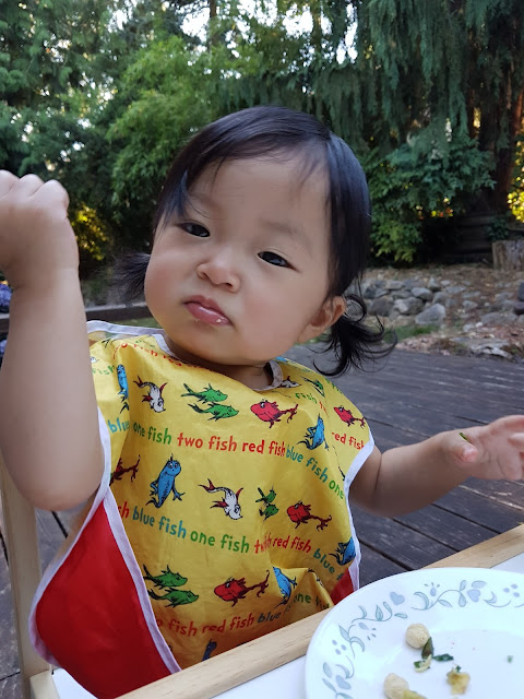 Xiao E was hording snack. Mimi grabbed a handful of cereals first chance she got.